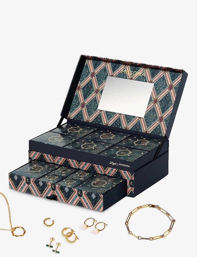 Already sold out on Missoma’s website (but still available at Selfridges here), this calendar from the London-based jewellery brand features both statement and everyday jewellery. Highlights include Missoma’s pyramid ear cuff, twisted chain choker and molten cuff bracelet. Bonus: the calendar, worth over £800, comes in a ready-made jewellery box with sliding drawers and an interior mirror.