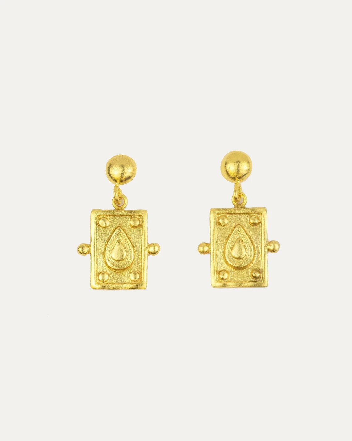 Ottoman Hands Tyche Engraved Gold Drop Earrings, £49