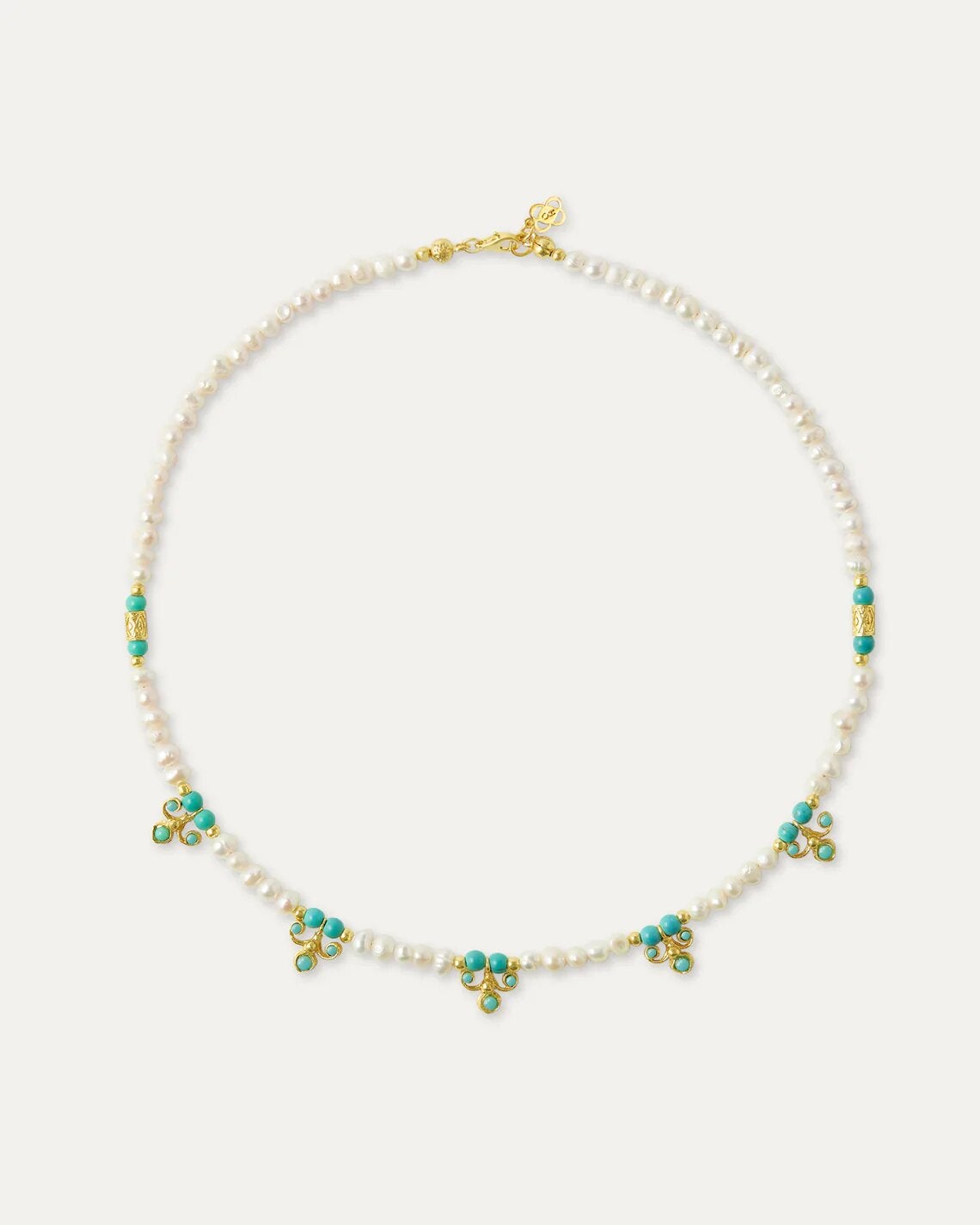 Ottoman Hands Amelie Pearl and Turquoise Beaded Necklace, $, available at Ottoman Hands