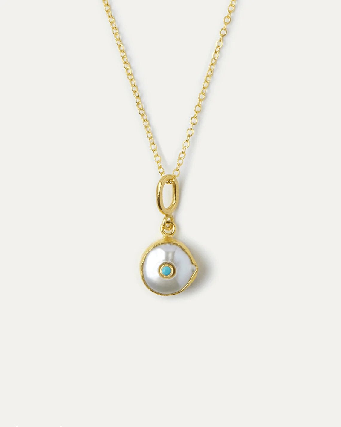 This delicate pendant, with its organic shape and mother of pearl and turquoise, looks and feels so much more expensive than it really is. It has me daydreaming of an ice-cold wine under the Mediterranean sun, bare shoulders and a summer tan.