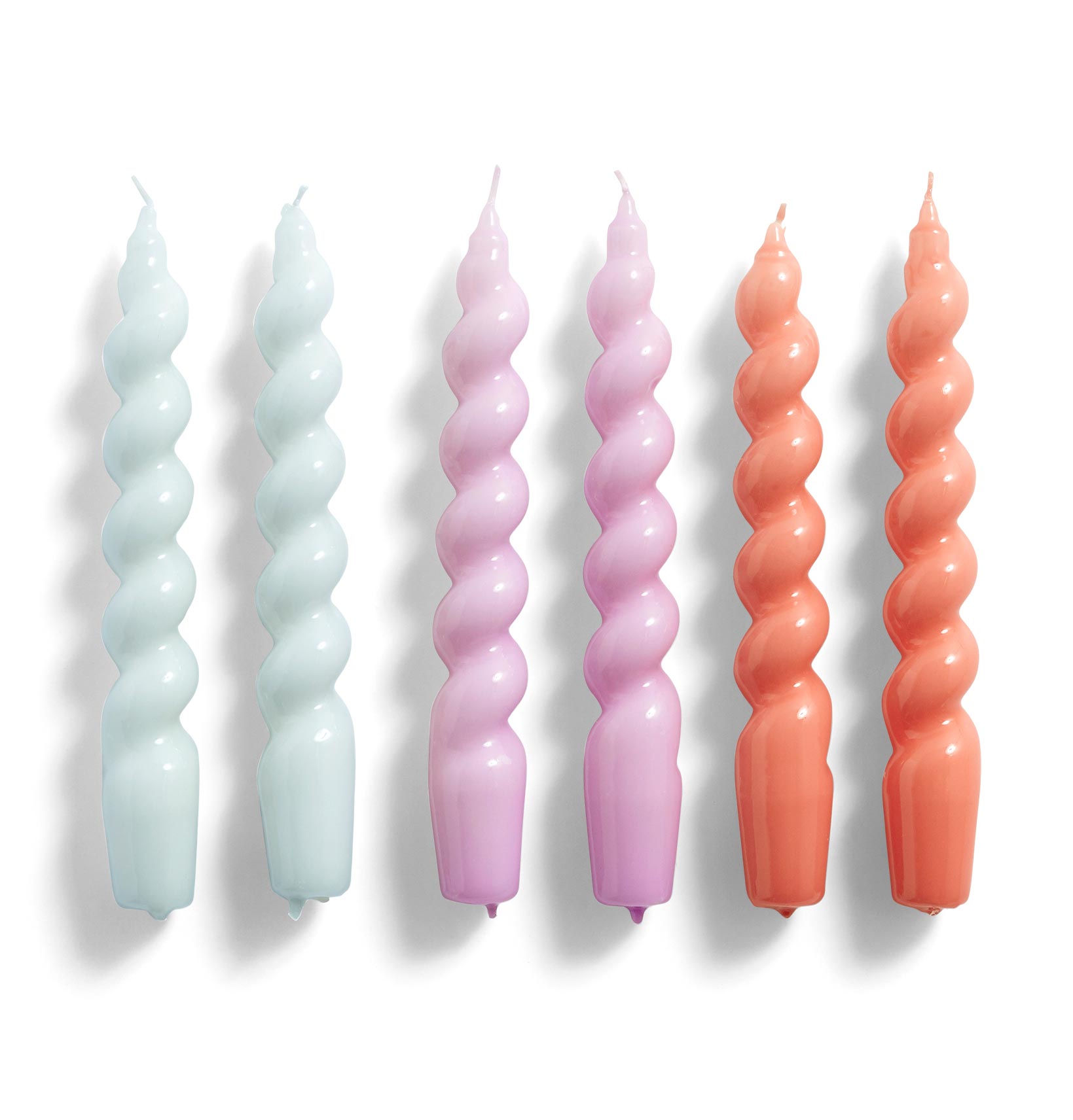 Hay Candle – Set of 6 – Spiral – Ice Blue, Lilac, Apricot, $, available at HUH Store