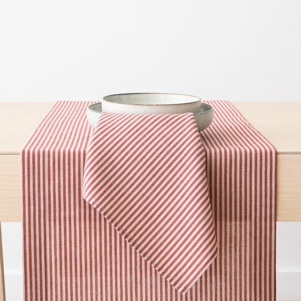 LinenMe Red Striped Linen Cotton Napkin Jazz, $, available at LinenMe