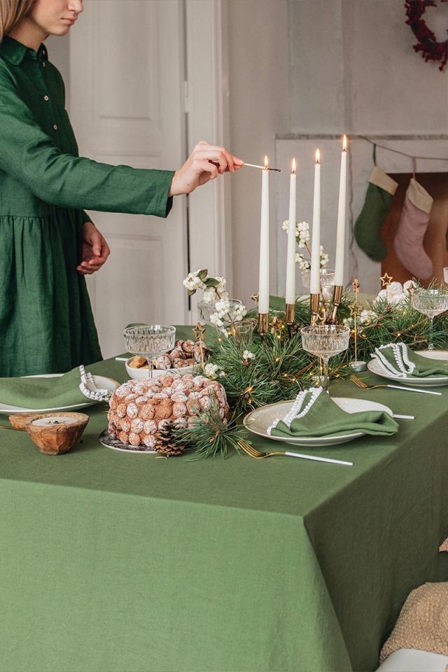 Magic Linen Forest Green Linen Tablecloth, £49.55