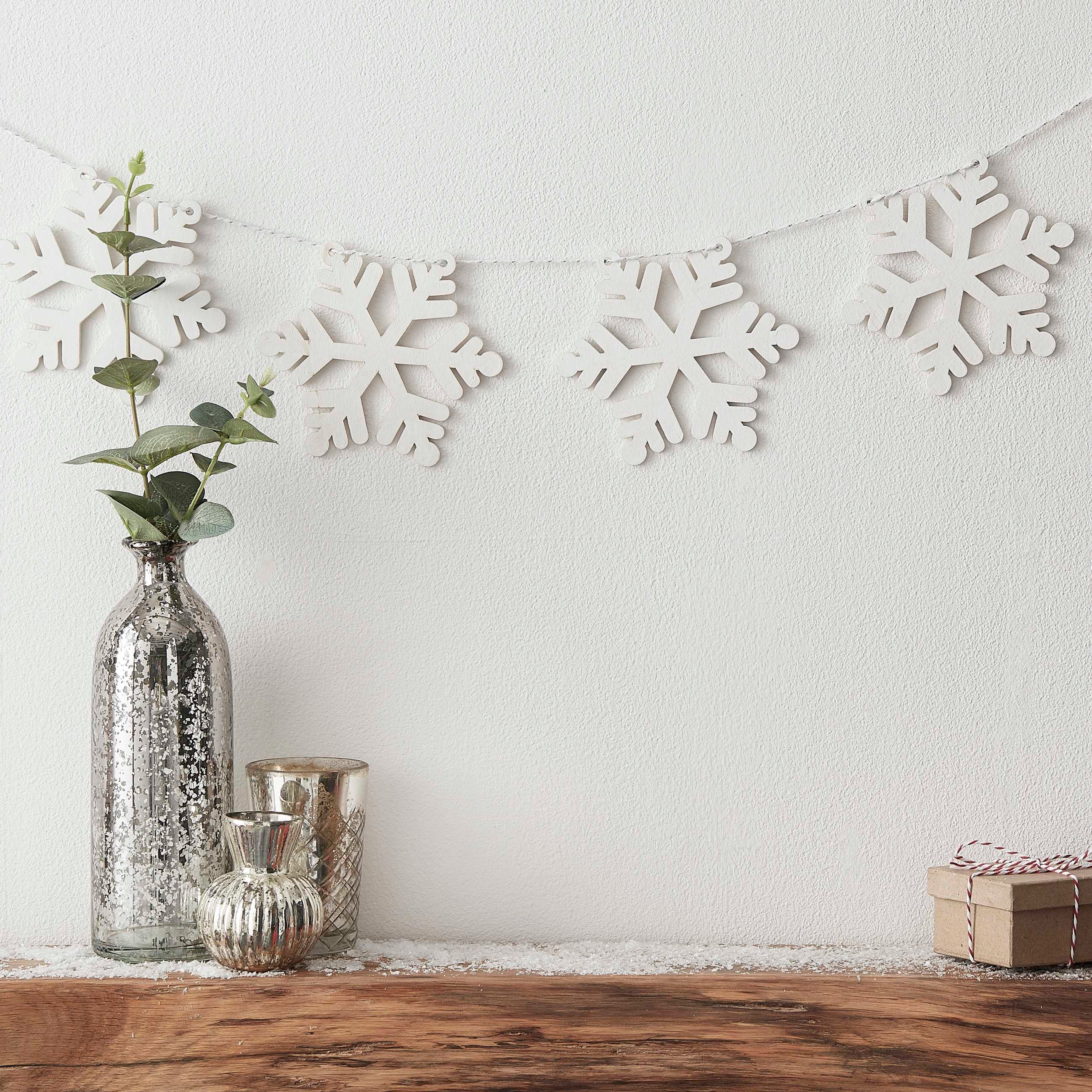Ginger Ray Christmas Wooden Snowflake Bunting, $, available at Ginger Ray