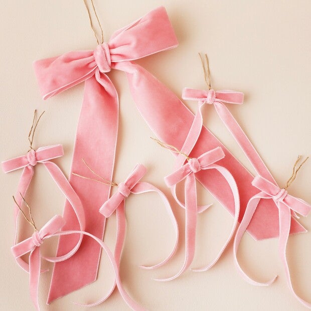 Lisa Angel Set of 7 Pastel Pink Velvet Bow Decorations, $, available at Lisa Angel