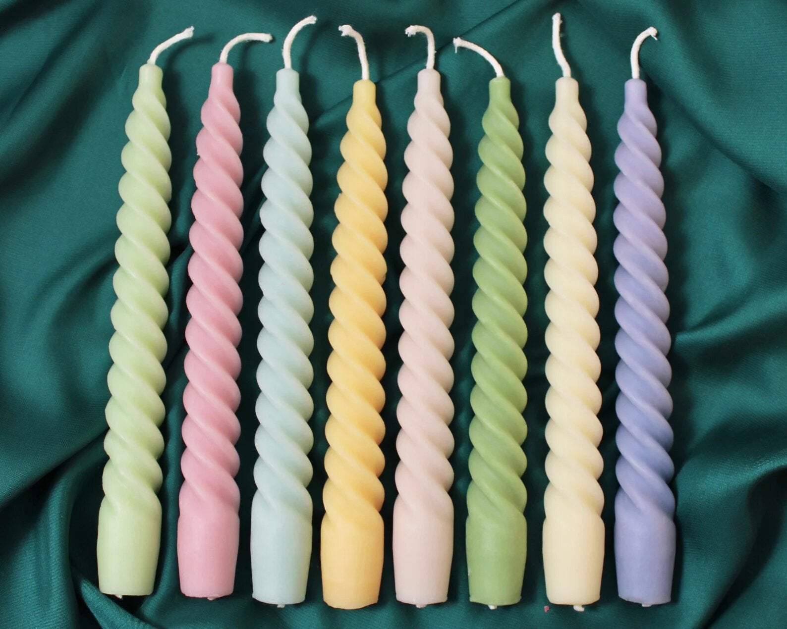 AllumeeHome Soft Pastel Beeswax & Soy Blend Spiral Twist Candles, $, available at Etsy