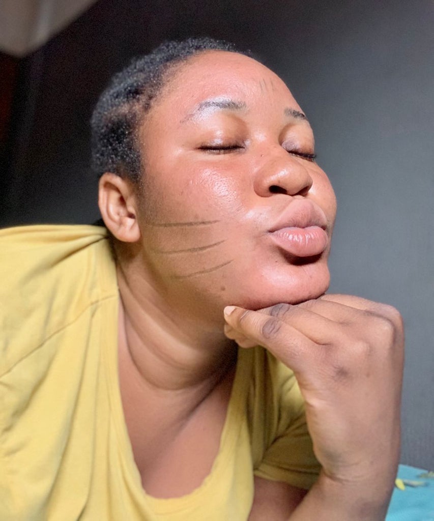 My childhood was a nightmare because of my tribal marks, so I hated having them. For the longest time, I struggled with my self-esteem. I doubted myself and called myself ugly, and when people would see me and ask, “who did this to you” I’d feel shitty all over and wish I never had it because scarifications like this should not be done to anyone without their consent.