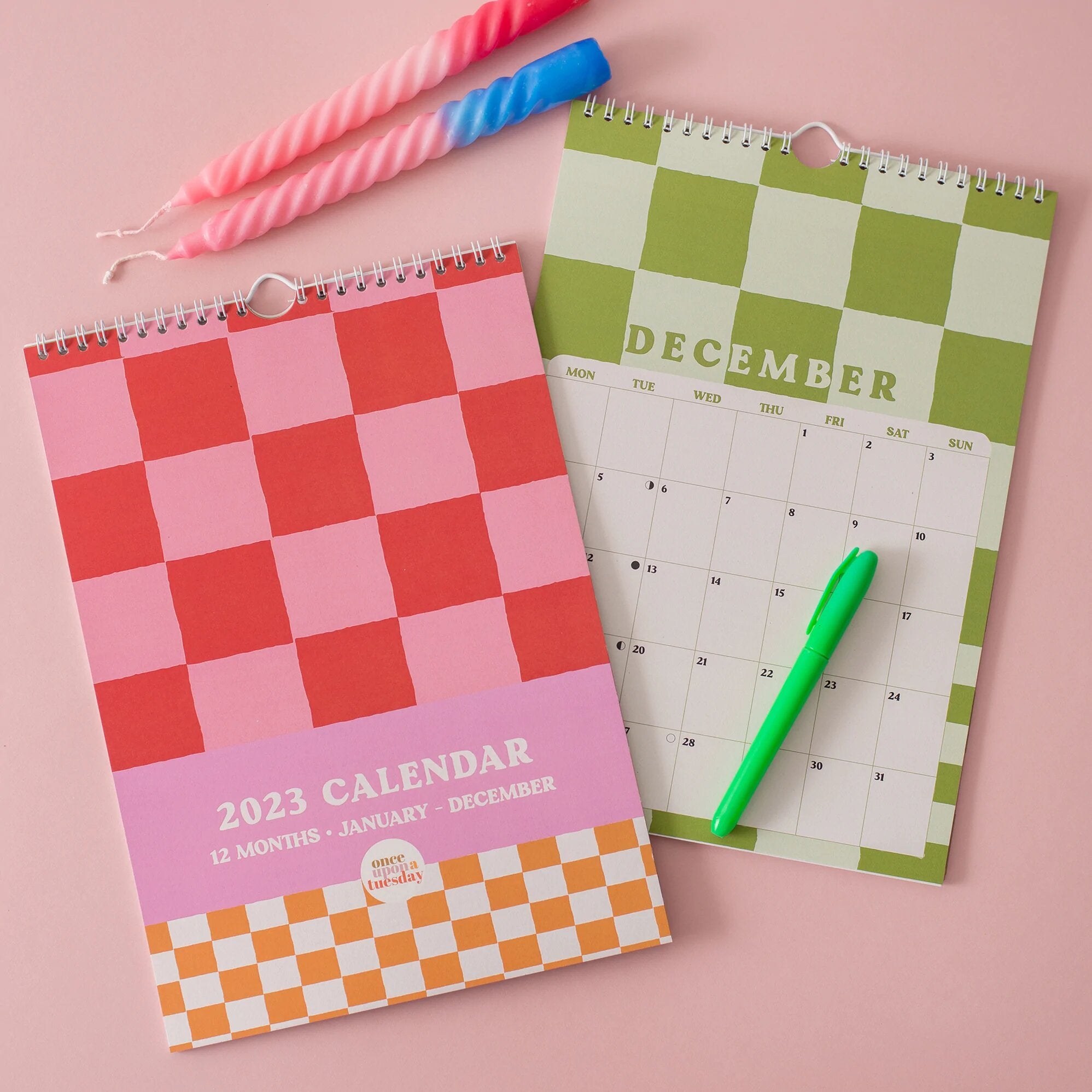 Once Upon A Tuesday 2023 A4 Checks & Stripes | 12 Month Hanging Calendar, $, available at Once Upon A Tuesday