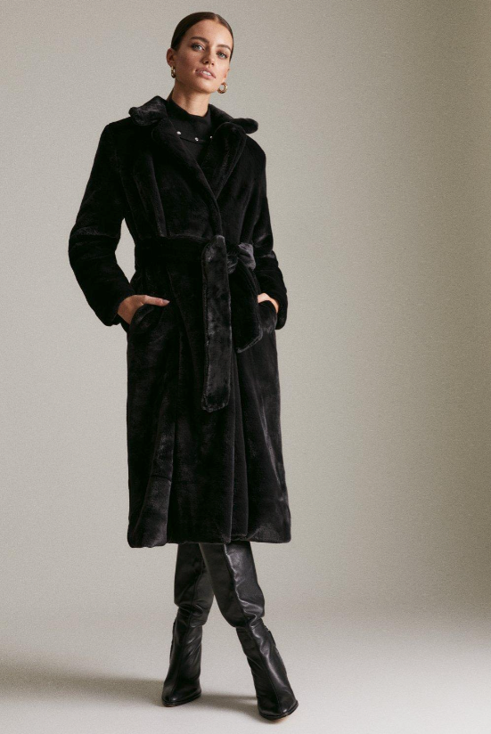 Karen Millen Petite Belted Faux Fur Coat, $, available at KAREN MILLEN