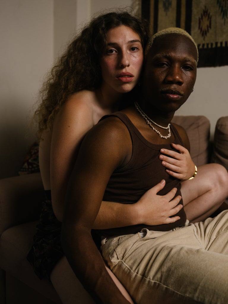 Photographer duo Rona Bar and Ofek Avshalom, both 27 years old, are discussing the ideas behind their latest shared photo project, Us, a gorgeous series of portraits documenting lovers together at home. Sensitively shot in warm, natural light, the images are an honest and intimate window into an array of unique love stories, featuring couples in Israel, the UK and various other places across Europe. “From the very beginning, we aimed to photograph real-life relationships, and we really wanted to represent couples you don’t often see in mainstream media,” the duo adds.