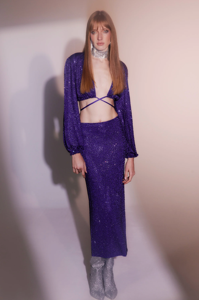 From ruffle tie tops with satin mini skirts to hooded latex looks and sheer dresses, the colour dominated the catwalk. Bella Hadid even debuted a head-to-toe violet wedding dress, complete with lace veil. Following the recent release of the Italian fashion house’s Dylan Purple fragrance, it’s clear the shade has the Versace seal of approval. Other labels seem to feel the same, with the hue visible in collections from Jacquemus to Stand Studio.