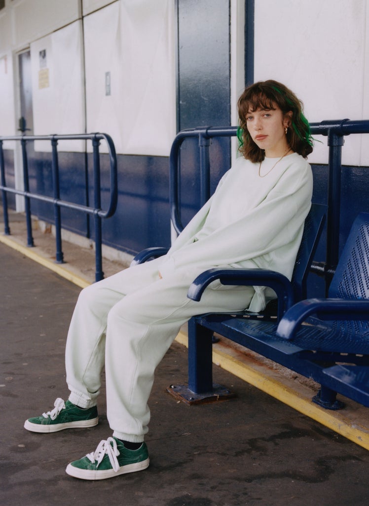 “I shot this a couple of days before Billie revealed she had dyed her hair to be blonde. So now this one weirdly already seems very dated, which is funny. I nearly went full in and got a wig with green roots – but that definitely felt too caricature and dress-up so I opted for a few green streaks. I think baggy clothes and the right body language was really important. I also really wanted a few accents of bright colours.”