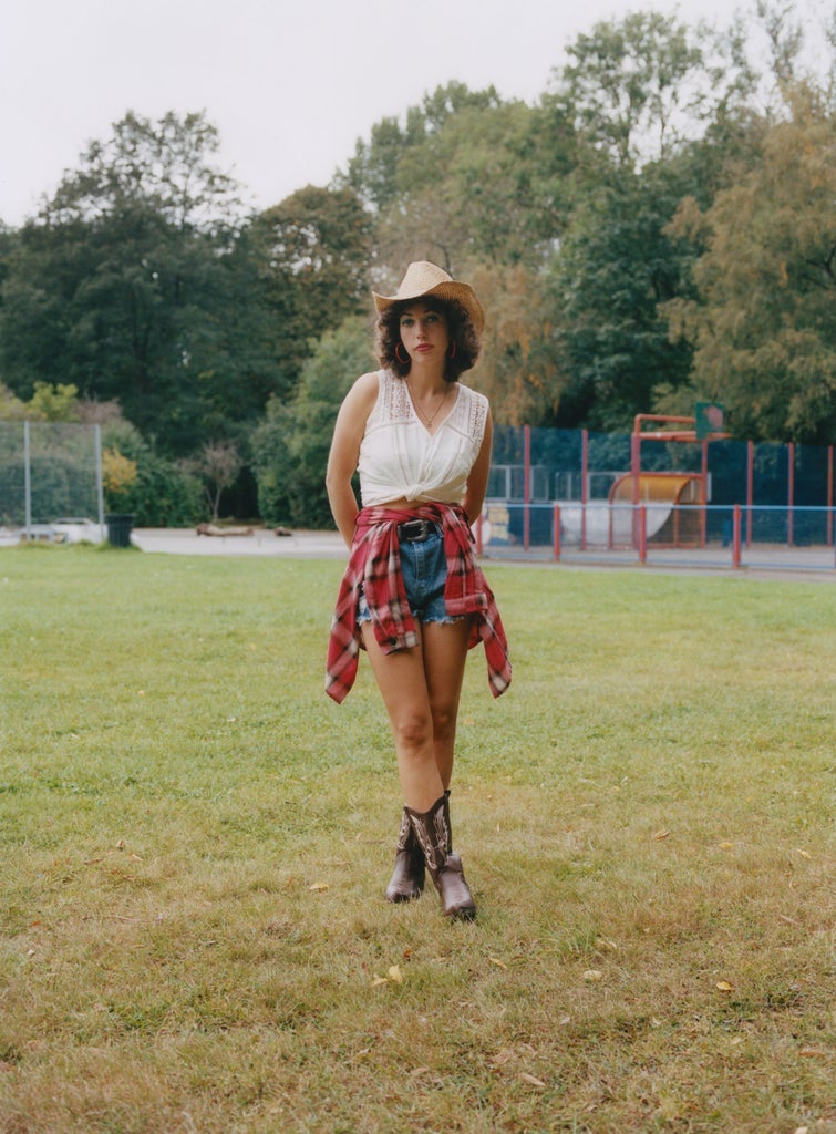 “I’m quite a big Dolly Parton fan (I feel like a lot of people are secretly?) and I listened to a podcast called Dolly Parton’s America, which I loved. I wanted to do a look which didn’t feel quite so young and was slightly out of the box so ‘country’ seemed appropriate. I looked at photos from country festivals in the US for inspiration. I think the colours of the outfit were important so it felt very patriotic. And, of course, the boots!”