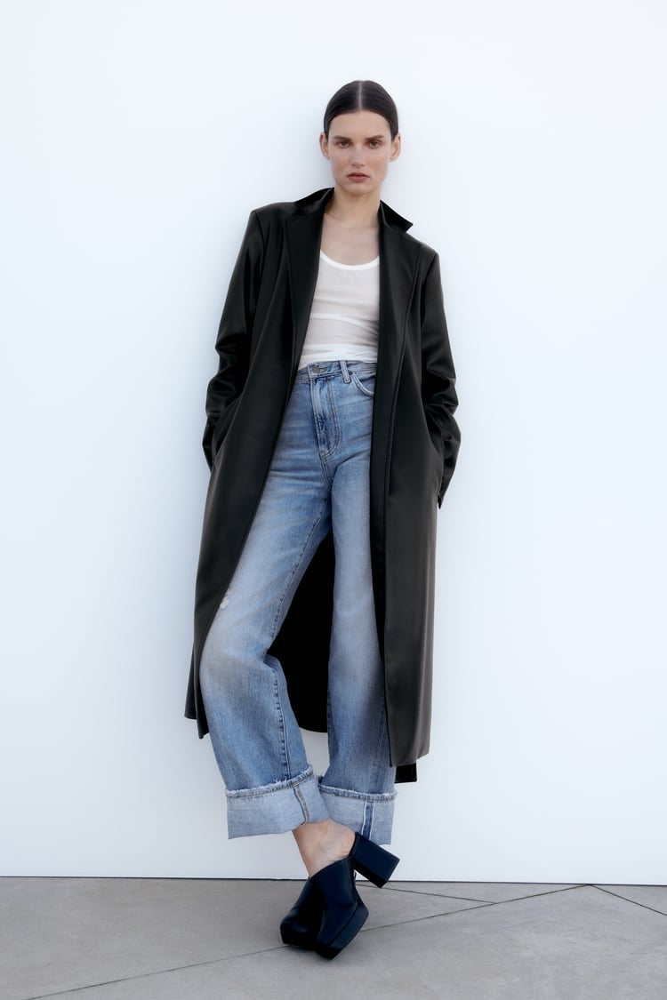 I’m going to have to shed my enormous, black, fluffy winter coat soon and I want to replace it with something equally as emo. This leather-look trench fits the bill perfectly.