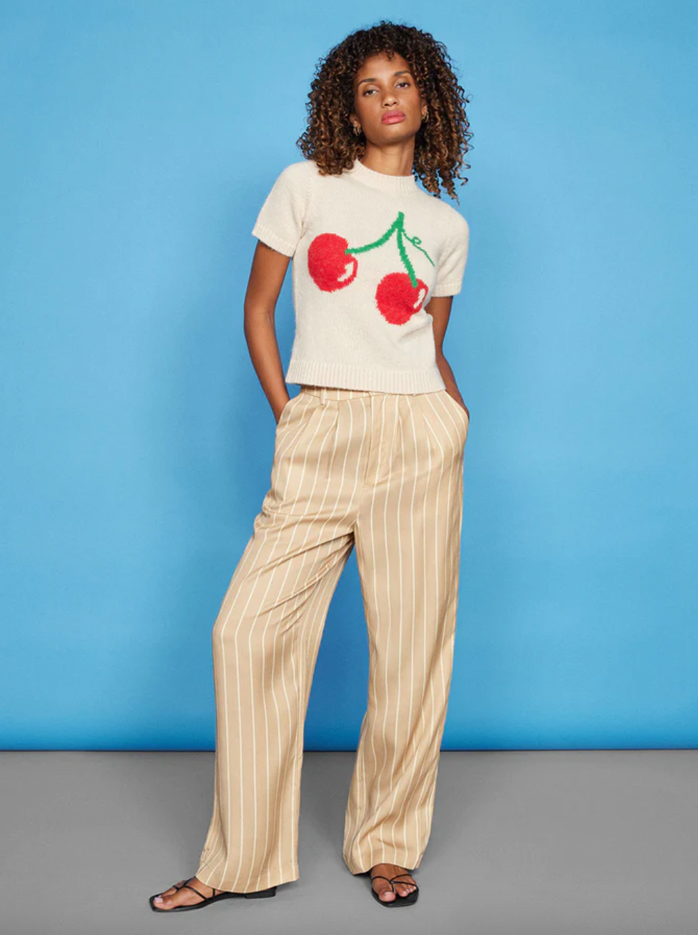 Bang on budget, this Kitri cherry knit hasn’t left my brain since I spotted it in our knitwear trends roundup. Following the same cosy and comfy vibe as the statement-making socks, it’s the perfect amount of cute and kitsch.