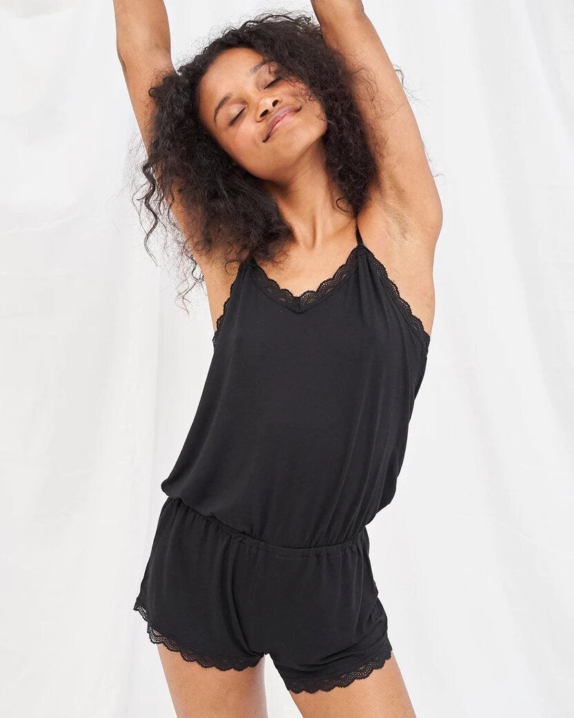 Stripe & Stare Romper – Black, $, available at Stripe & Stare