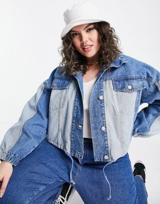 Urban Bliss Plus Patchwork Denim Jacket, $, available at ASOS