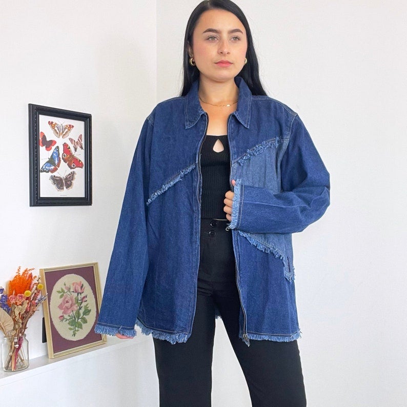 ItsJinkiesCollection Vintage 1990s / 90s Denim Patchwork Jacket, $, available at Etsy