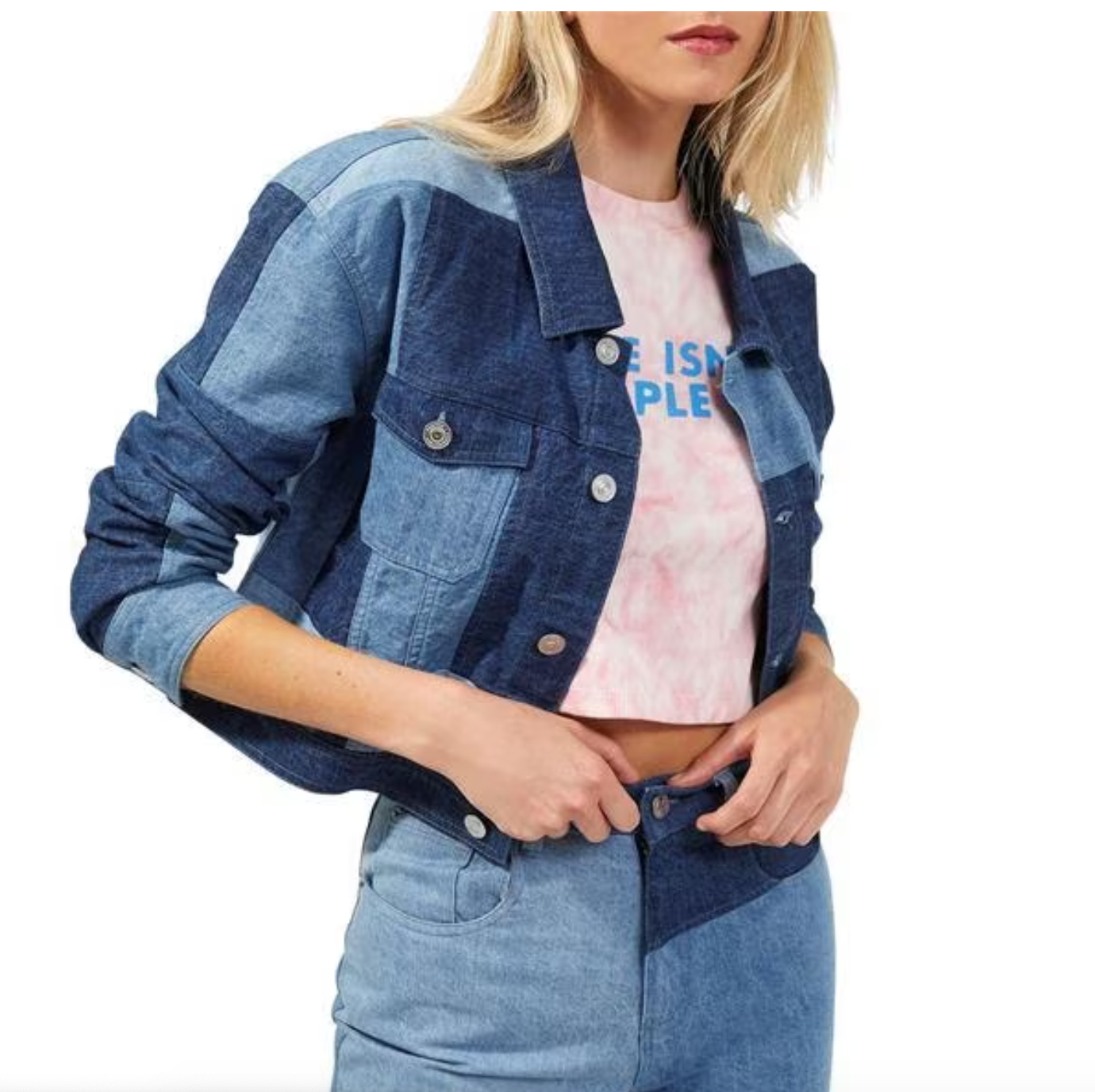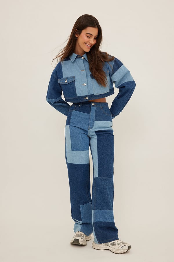 NA-KD Organic Patchwork Cropped Denim Jacket, $, available at NA-KD