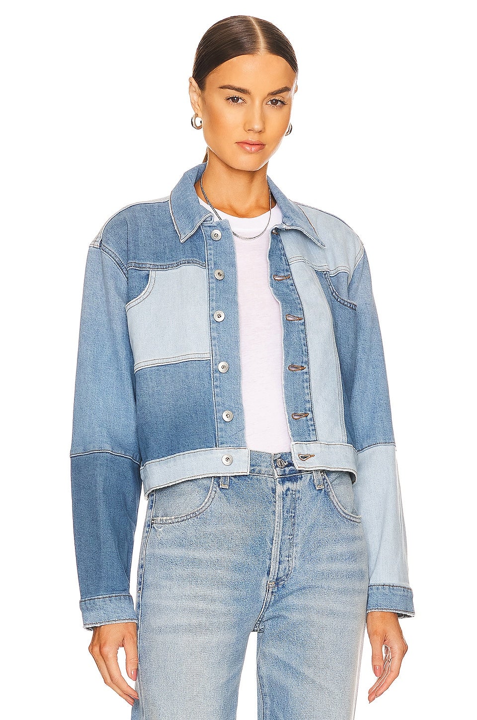 JONATHAN SIMKHAI STANDARD Wren Patchwork Jacket, $, available at Revolve