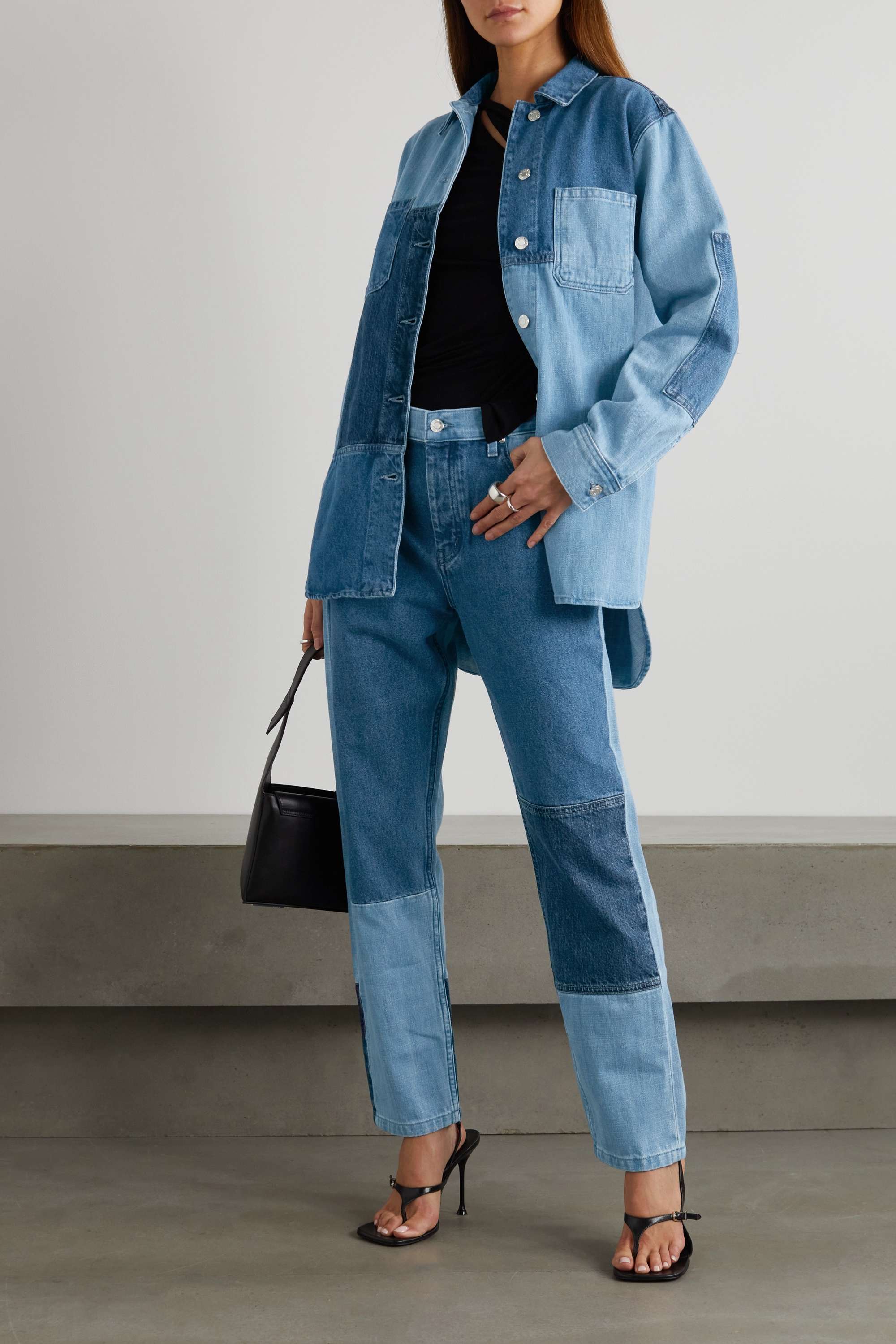 Helmut Lang Oversized Patchwork Denim Jacket, $, available at Net-A-Porter