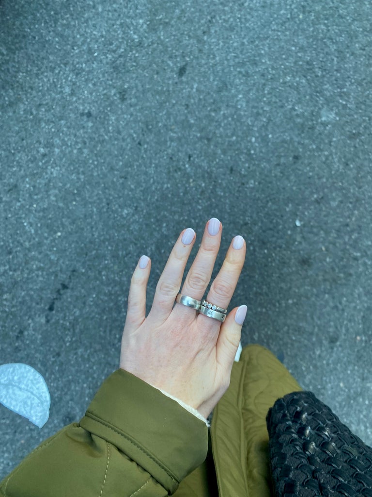 The process involved shaping (I went with round tips) and two coats of Romantique, then Studio White was painted with a thin striping brush to give the effect of another trend: the micro French. “We are getting a lot of requests for the micro French,” says Apfel Glass, “which is a thin and more subtle line.” When my nails are short, I prefer a micro French to the traditional because it’s more subtle. Paired with the full-coverage pink base, this interpretation is a micro milky French.