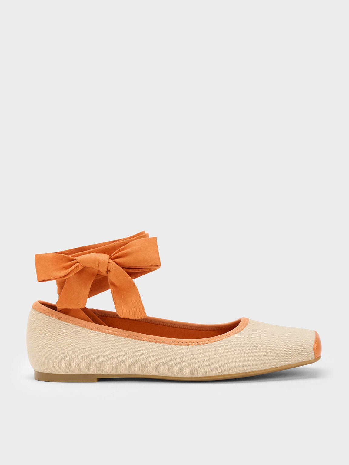 Charles & Keith Tie-Around Canvas Ballerina Flats – Orange, $, available at Charles & Keith