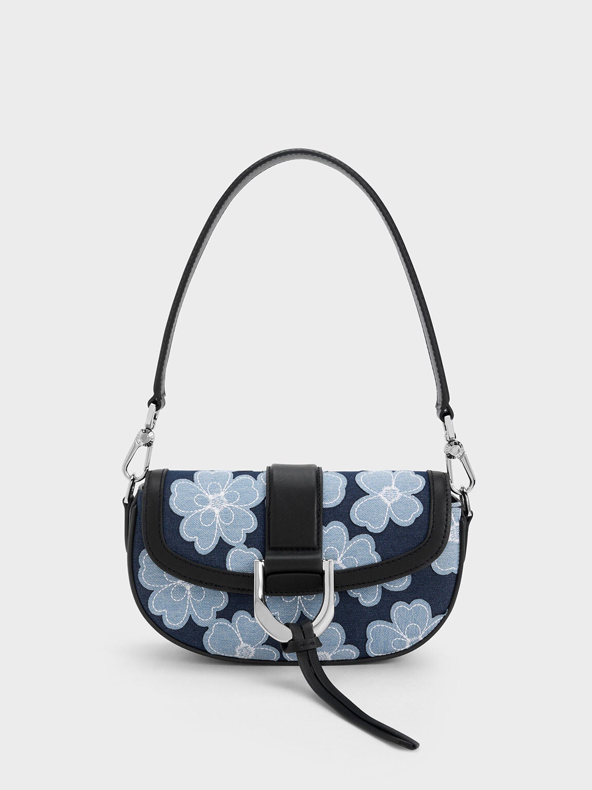 Charles & Keith Gabine Floral Denim Shoulder Bag – Blue, $, available at Charles & Keith