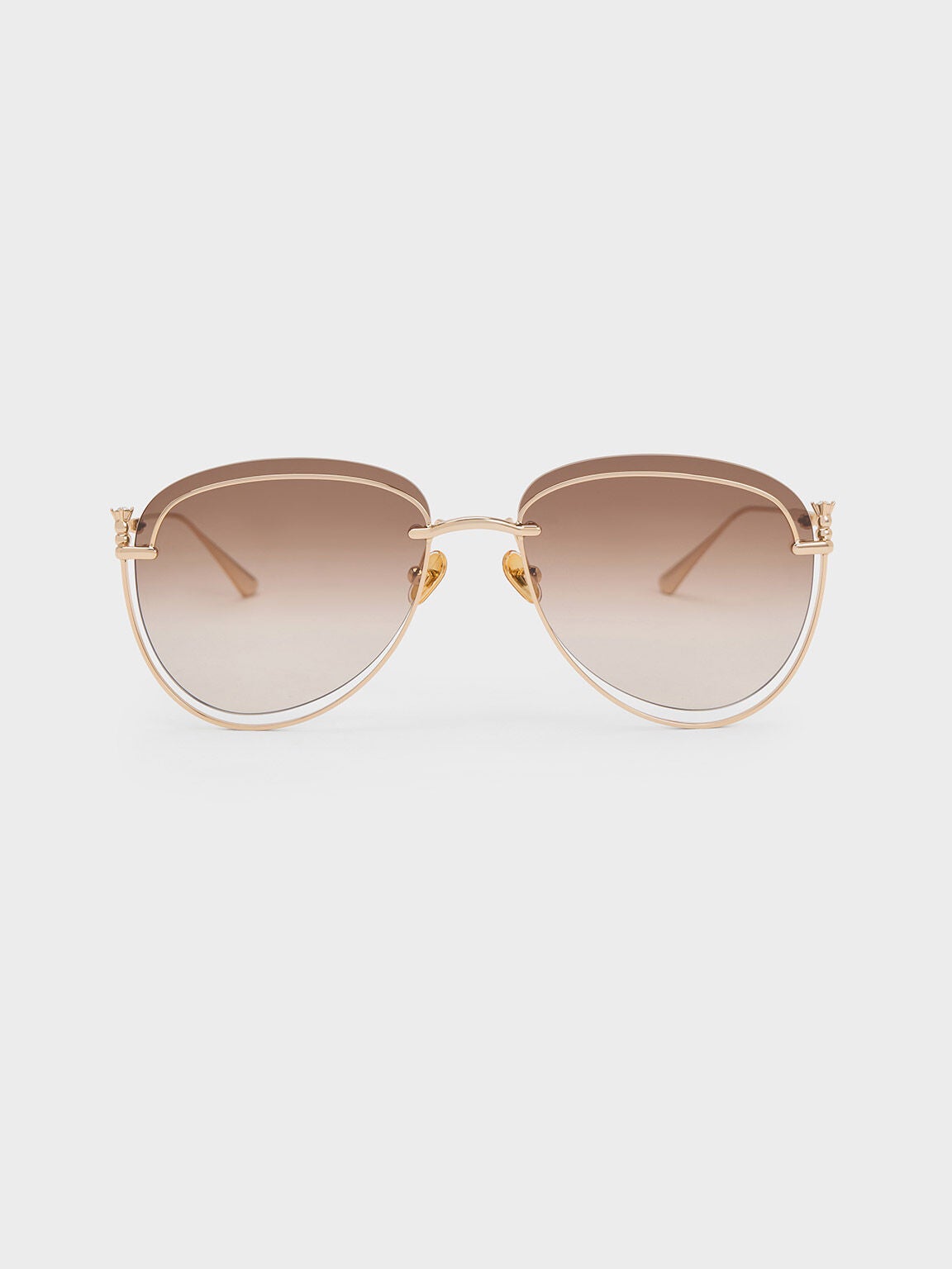 Charles & Keith Oversized Wireframe Aviator Sunglasses – Gold, $, available at Charles & Keith