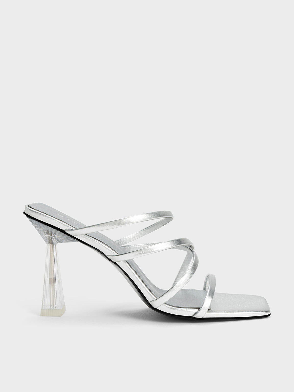 Charles & Keith Transparent Heel Strappy Mules – Silver, $, available at Charles & Keith