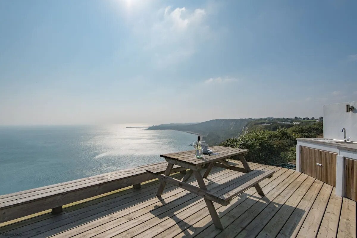 Now, just look at that view! Truthfully, you don’t need much more to sell this Airbnb, but we’ll try anyway. It’s a cosy and retro-style, silver Airstream trailer perched on a cliff overlooking the Channel; the perfect romantic hideaway for two people.