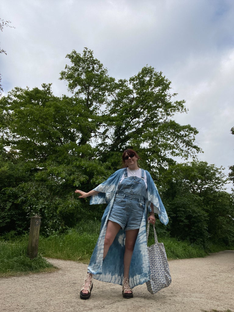 Practically speaking, you don’t really want to be trailing a flowing white skirt through the grass or tempt fate with strawberries and a flimsy picnic plate. Rather, for a park hang, I kept things simple in easy denim dungarees, chunky sandals and a loose duster (this tie-dye Free People one reminds me of sunlight on waves), ideal for keeping warm when the sun goes down.