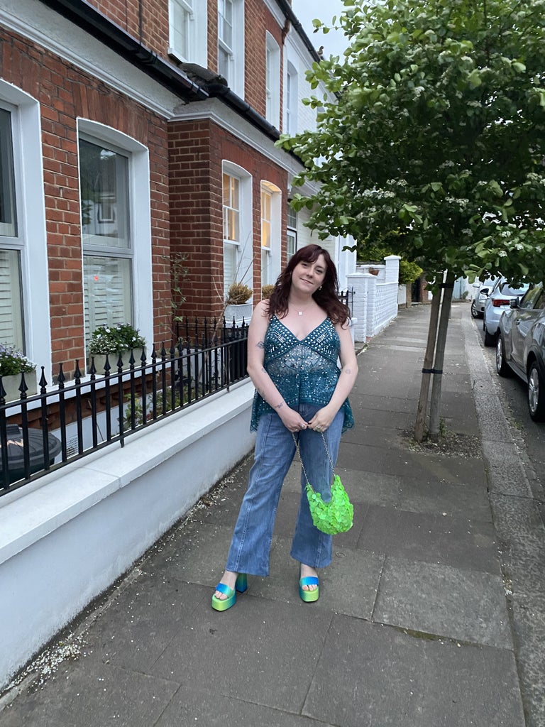 There are plenty of pretty mermaid-esque party dresses out there. But what about the mermaid who’s just off to the cocktail bar for a few drinks and a casual catch-up? In my case, she favours a ’70s-inspired, Daisy Jones-style look with a sparkly blouse, embellished platforms and scaly, sequinned bag. Takes jeans and a nice top to a whole new level.