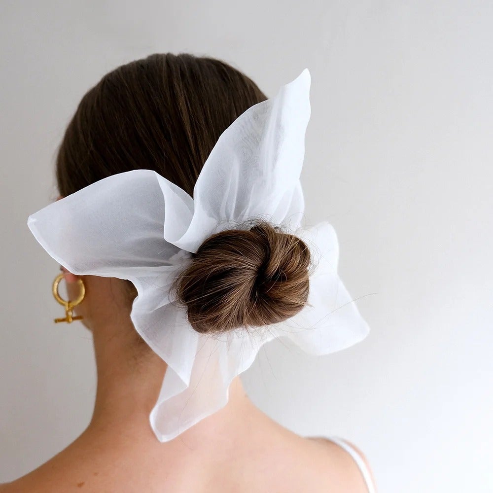 The Pantry Bridalwear Double Organza Scrunchie, $, available at The Pantry Bridalwear