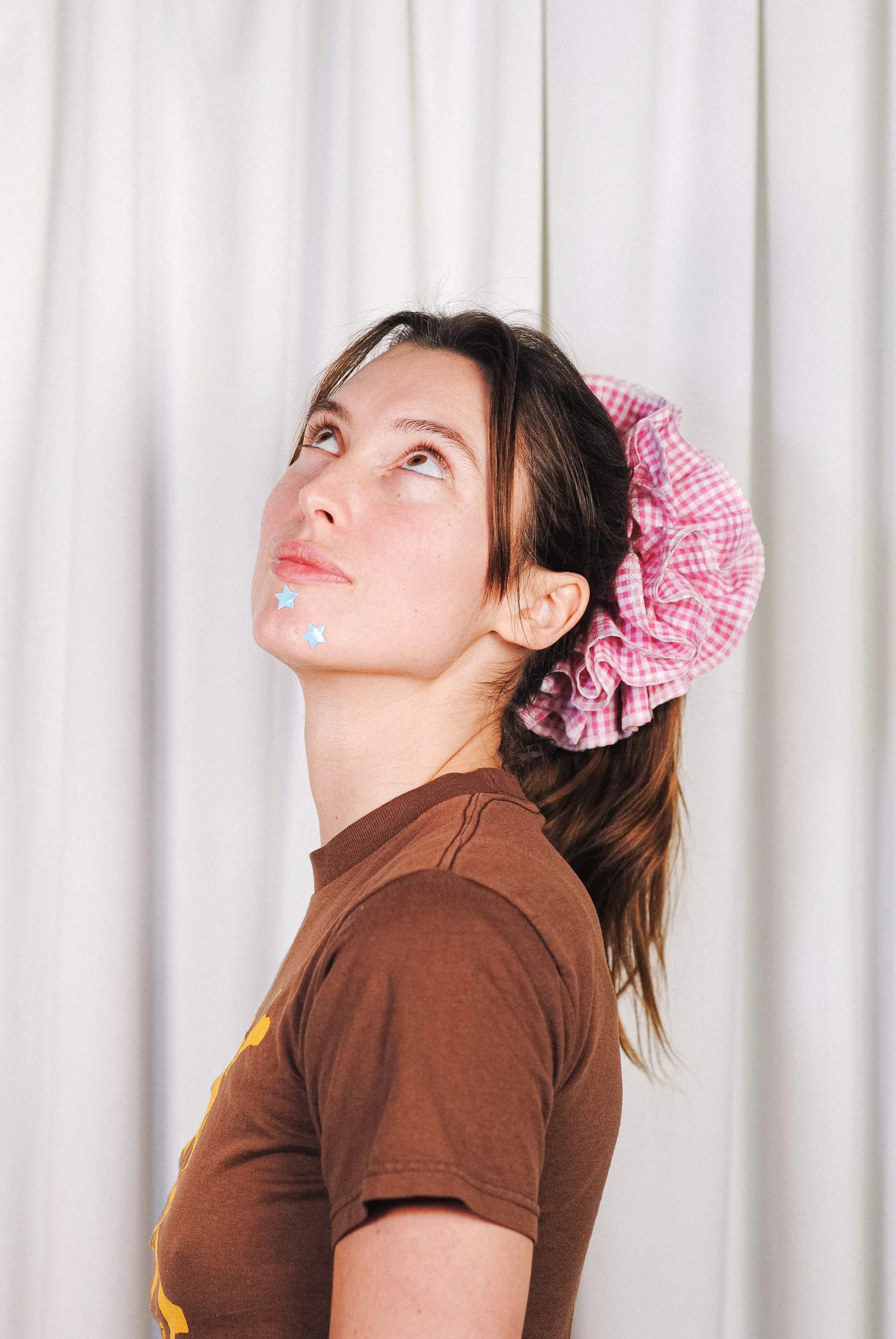 ROOP Maddy Bow Scrunchie in Check Taffeta, $, available at ROOP