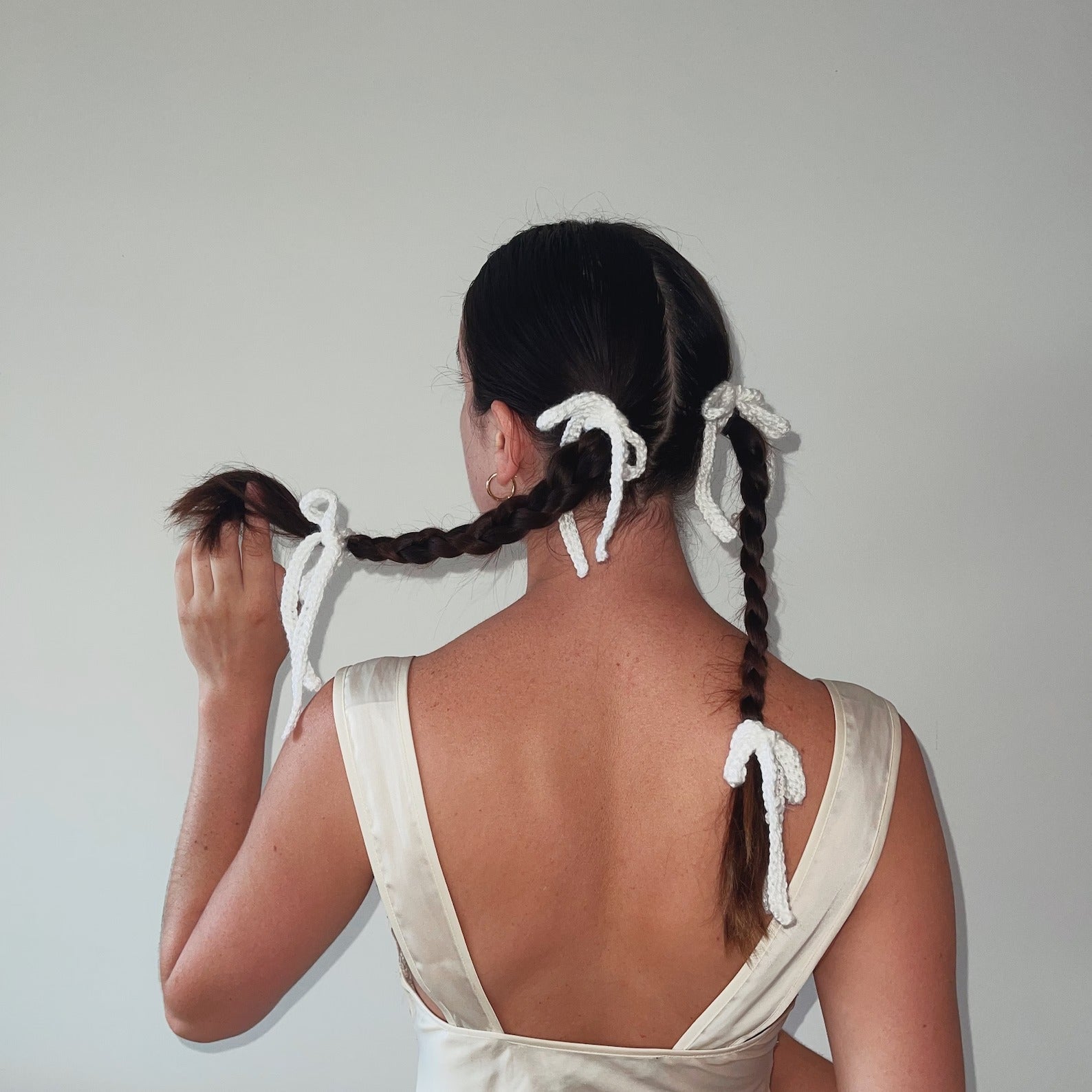 AlbuUrsa Crochet Bow Hair Ribbons, $, available at Etsy