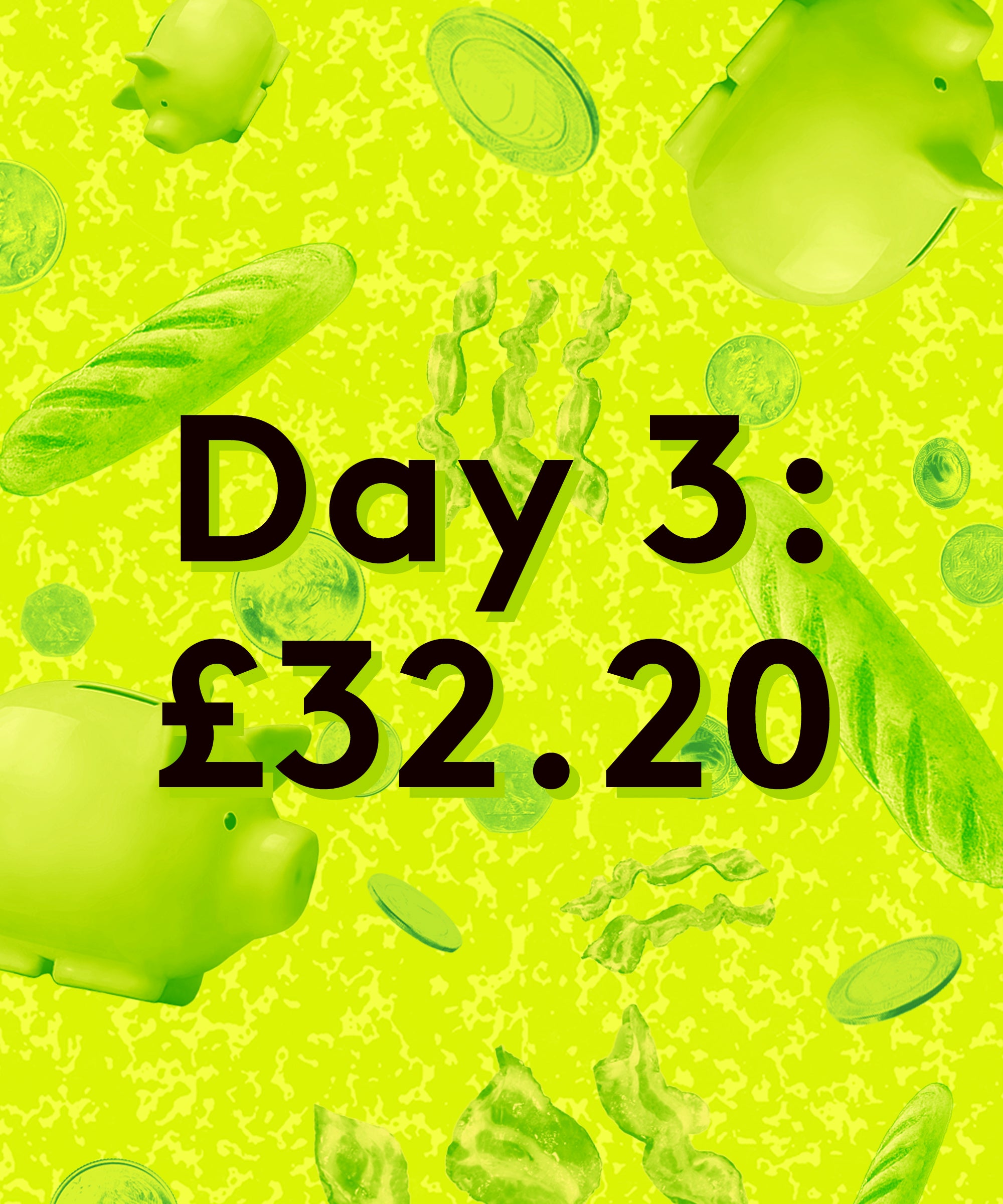 1.20pm: I forget to get mozzarella to add to my homemade lunch of roast veggies and hummus wrap but a colleague kindly grabs some for me when they go out for lunch and I pay them back, £1.50.