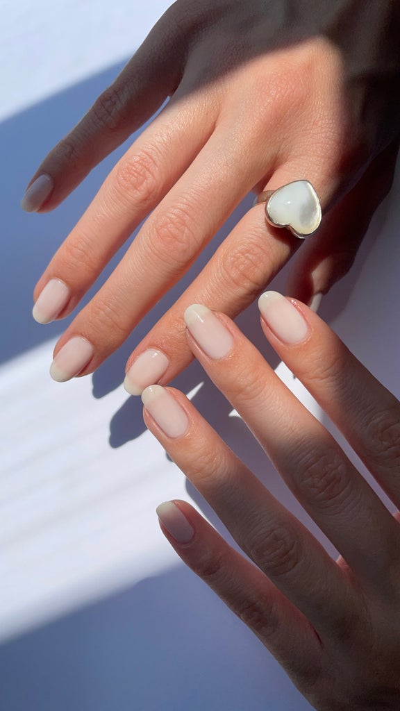 “I do a slightly rounded, slightly square nail,” she explains. Why? Jess explains that a fully square nail is too angular: “The corners bend when I do a button-fly jean,” but an oval nail can quickly turn pointy at the end and end up in the stiletto territory. An easy tip in getting a squ-oval tip is to mirror the shape of your cuticle. “That’s a great way to see what nail shape will look best on your hand,” Jess recommends. “Look at the shape of your cuticle and match it.”