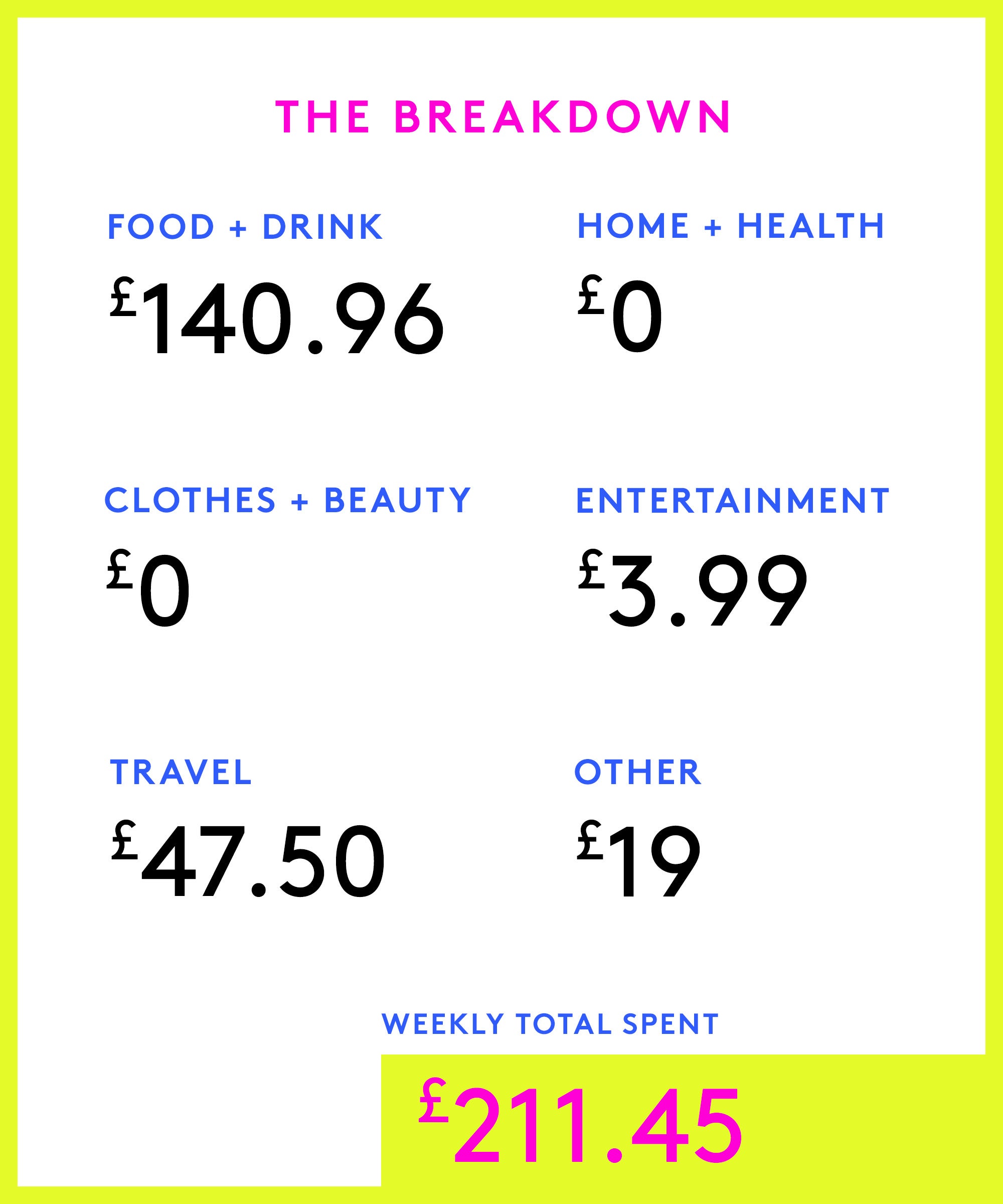 “I think reading this back I need to have a little more fun! It’s been really hard managing a social life whilst grieving and dealing with my health issues, but I feel like all my money goes on boring stuff like petrol and the food shop. I think I need to not be scared to spend a little more money on stuff I love doing and I will try and remember this moving forward.”