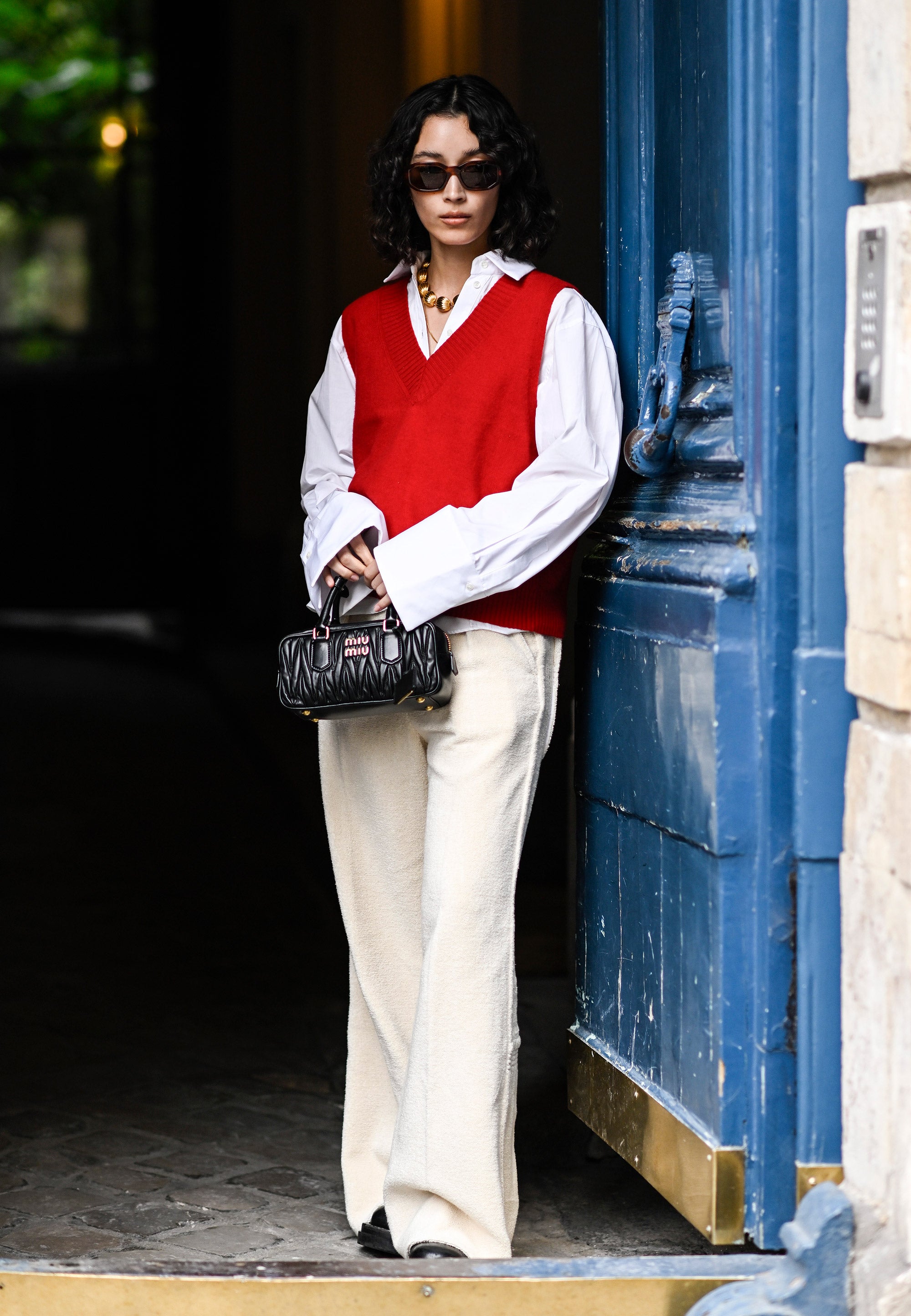 Let the streets of Paris be your reminder: Knitwear doesn’t always have to mean jumpers. Whether it’s sleeveless vests or knit tanks, look for pieces that can stand on their own but also go over button-downs and underneath blazers. Photo: Daniel Zuchnik/Getty Images