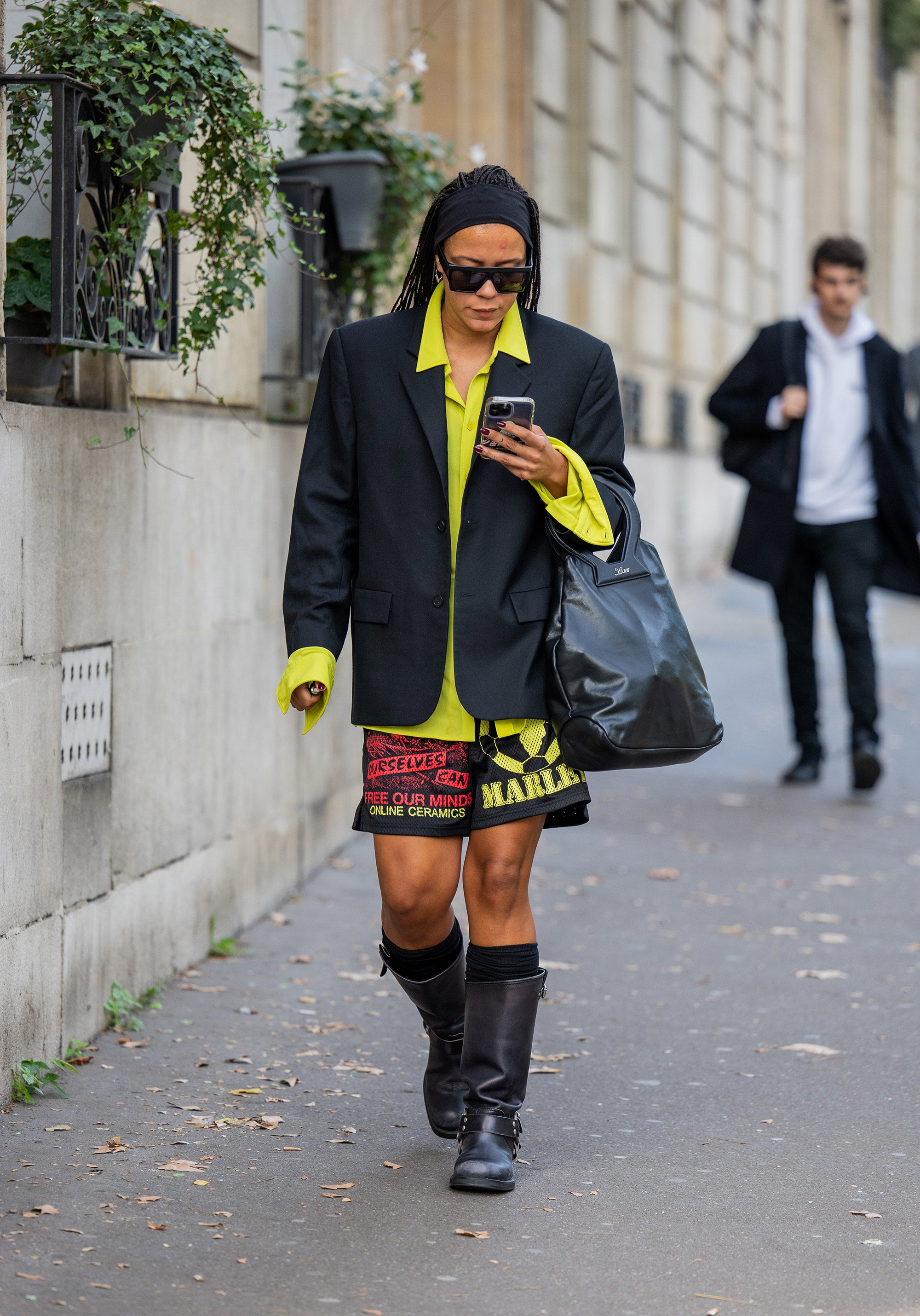 This one’s a timeless transitional-weather styling tip. Knee-high boots and mini skirts go together like peanut butter and jelly. Layer the combo with a long coat or a cosy knit for a deliciously autumn aesthetic. Photo: Rachpoot/Bauer-Griffin/GC Images