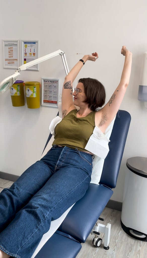 I’m intrigued, if a little sceptical. And so I head to the Cadogan Clinic in London where Dr Hazim Sadideen will be performing the non-invasive procedure on me. And while it is expensive (costing around £300 a go), it is also relatively quick and painless. As long as you have no conditions that would make the procedure risky like pregnancy, all it takes is 20 minutes with your armpits coated in numbing cream, then a five minute clean up and 10 minute injection process. Thanks to the numbing, my high pain threshold, and the use of a series of fine, small needles in a grid pattern over each armpit, it felt like less than a tiny scratch and was over in minutes.
