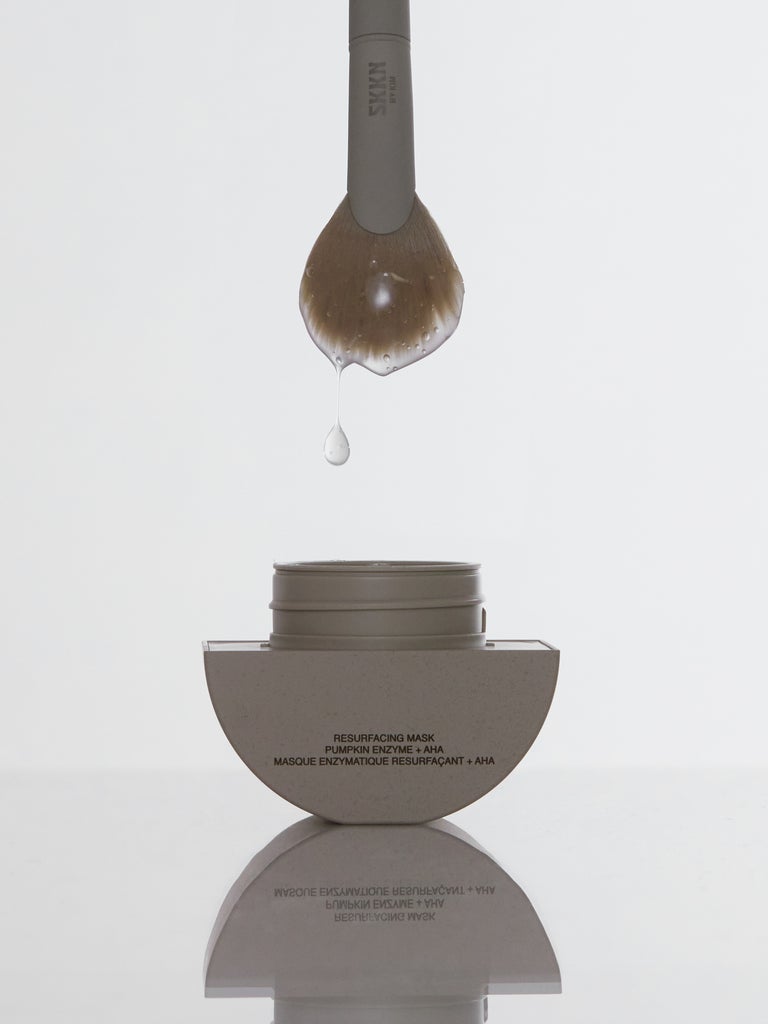 The pumpkin enzyme mask became such a key player in her weekly skincare routine, Kardashian decided to bring it into her Skkn by Kim collection. “I would have never imagined I’d use pumpkin enzymes on my skin,” Kardashian admits, “but becoming aware that [enzymes] are so used in the industry, I wanted to bring that to the consumer.” The Skkn By Kim Resurfacing Mask, which launches on October 4th, “has the fermented pumpkin enzymes with the glycolic and lactic acid, which helps to enhance your skin texture and your complexion,” Kardashian explains.