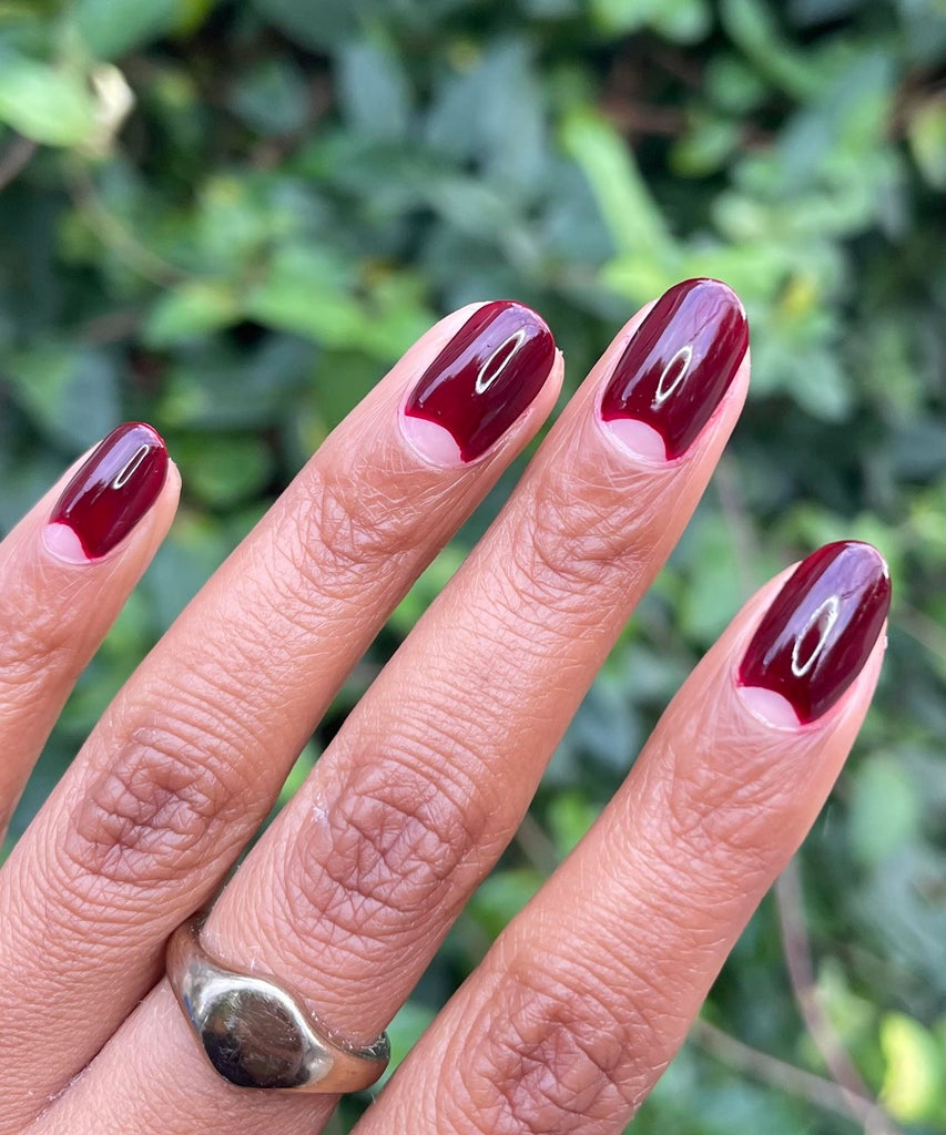 What’s the best cherry mocha polish? Here, content creator Marianna Mäkelä is wearing a gel polish by Blazing Star in Cherry Wine. Rodriguez also recommends Essie Bordeaux, £8.99, a brown-tinged burgundy.