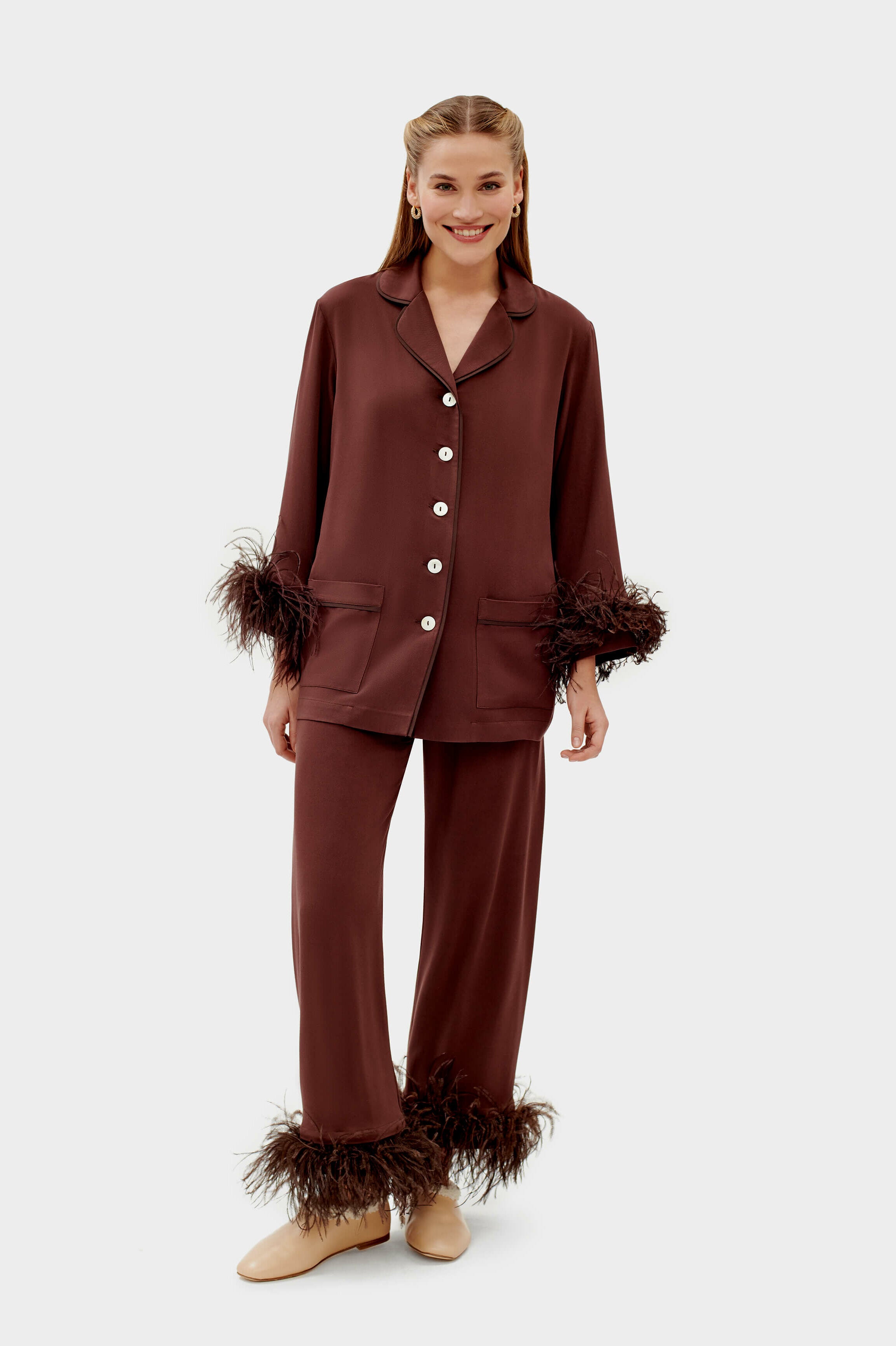 Sleeper Party Pajama with Double Feathers in Whiskey Brown, $, available at Sleeper