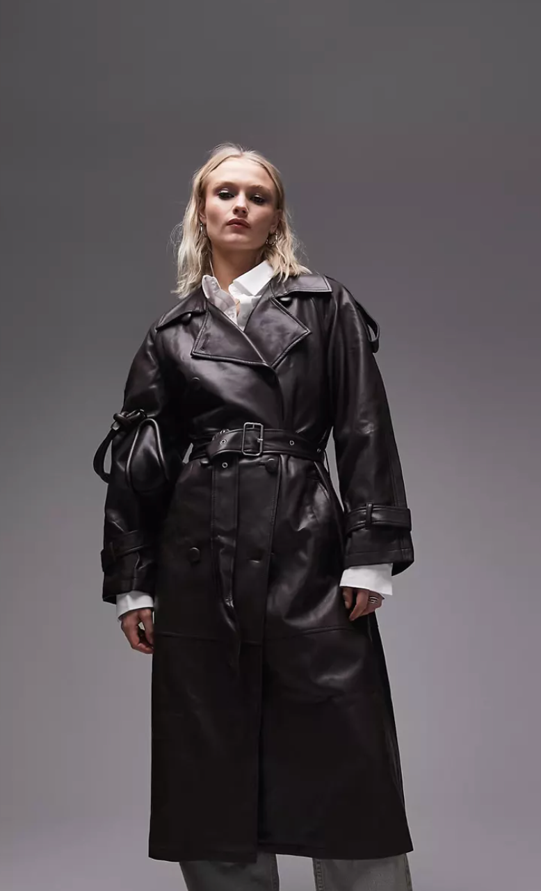 Topshop Faux Leather Trench Coat in Dark Chocolate, $, available at ASOS