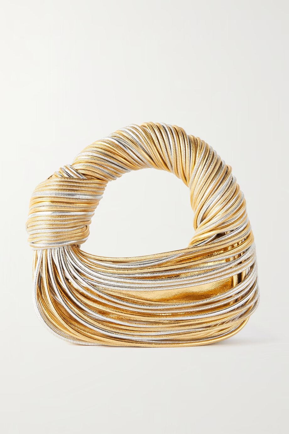 Bottega Veneta Jodie Mini Knotted Metallic Textured-Leather Tote, $, available at Net-A-Porter