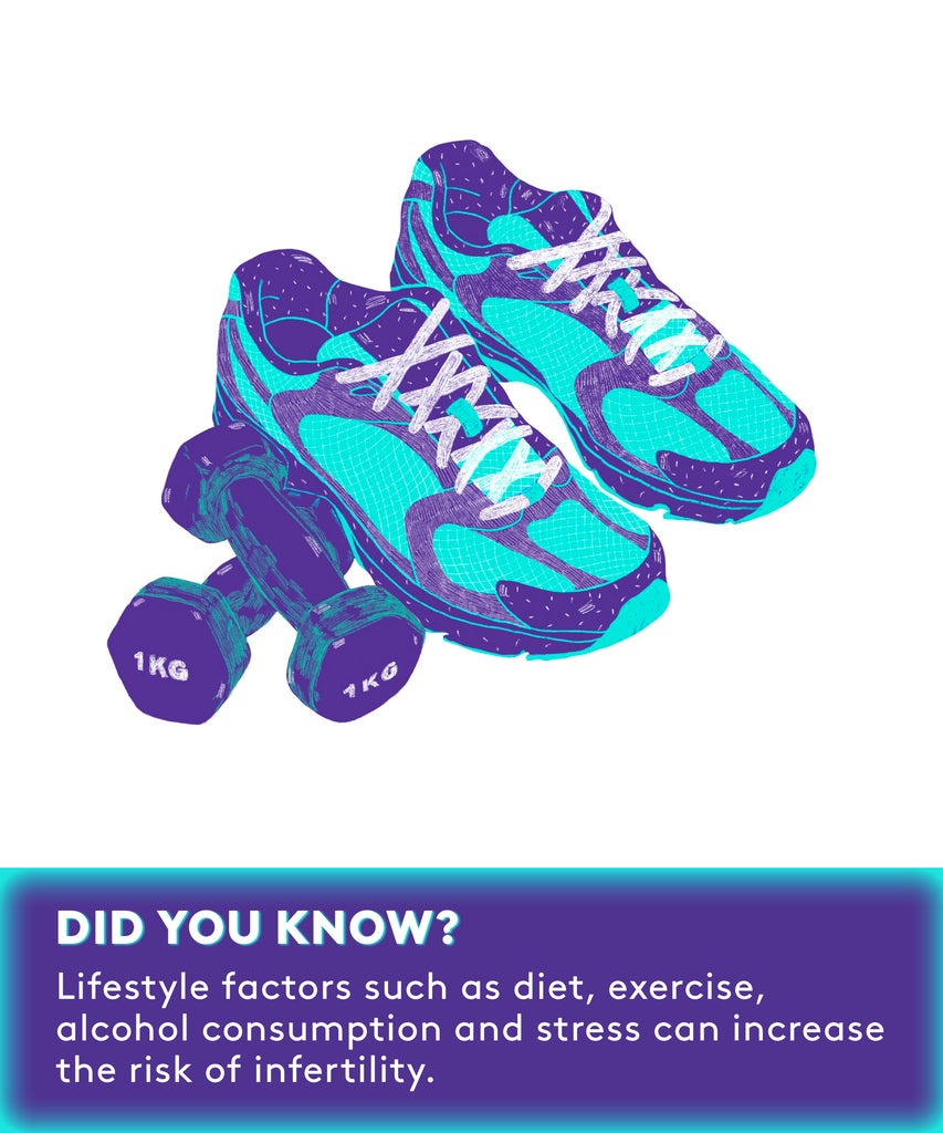 If you do see having kids in your future, it can be helpful to get clued up earlier rather than later. Around one in six people will have challenges with fertility, and there are many possible causes, including a lack of regular ovulation, poor quality semen, blocked or damaged fallopian tubes or endometriosis. There are also risk factors that may affect fertility. Age and lifestyle are some of the main factors that affect it — fertility declines with age, and lifestyle factors like our weight, smoking, alcohol intake (and more) can have a huge impact. This doesn’t mean you need to overhaul your lifestyle and stop doing things you enjoy, but it helps to have the right information now to allow you to make informed decisions.