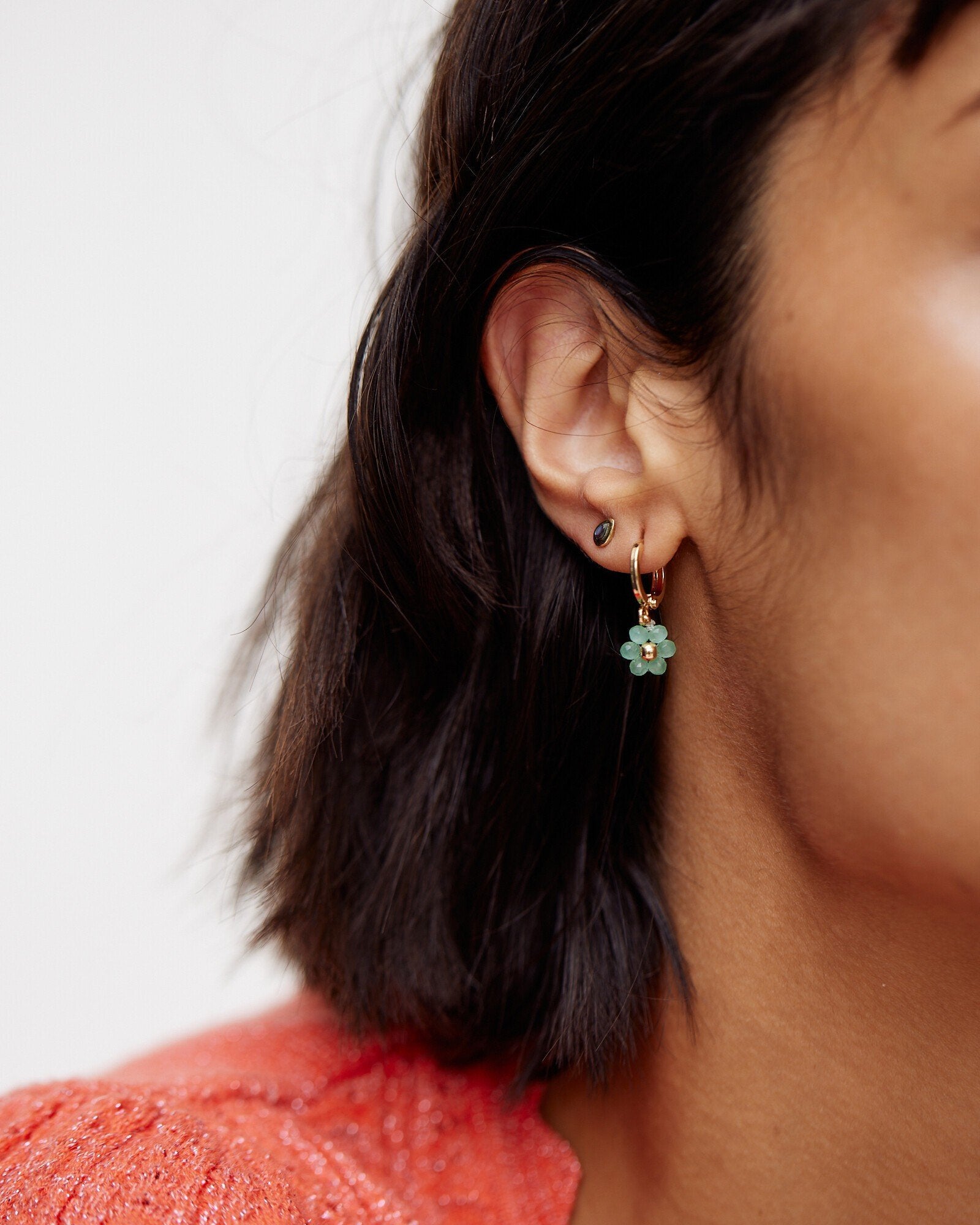 Oliver Bonas Rosa Light Blue Flower Hoop Drop Earrings, $, available at Oliver Bonas