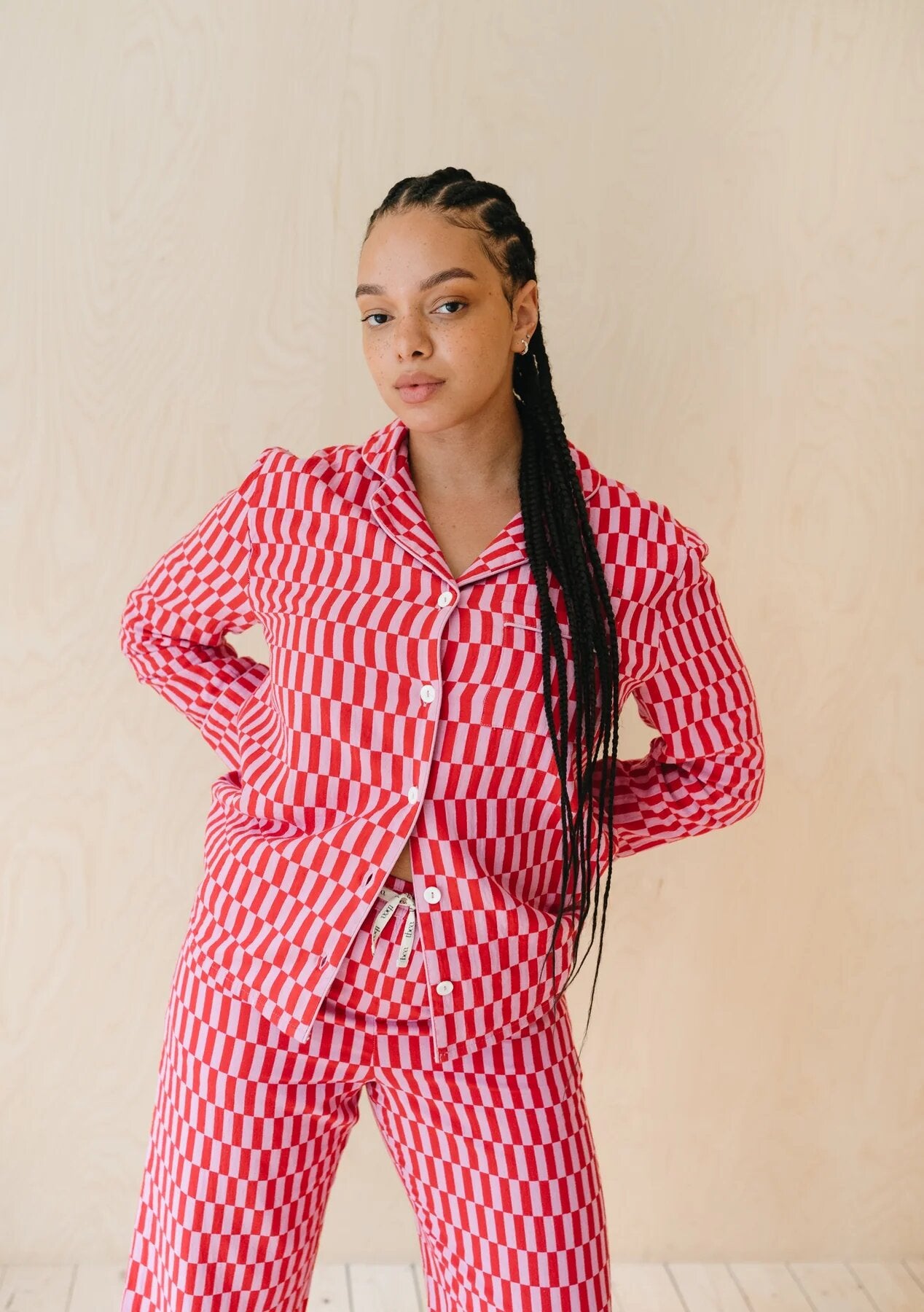 TBCo Cotton Pyjamas in Pink Checkerboard, $, available at TBCo